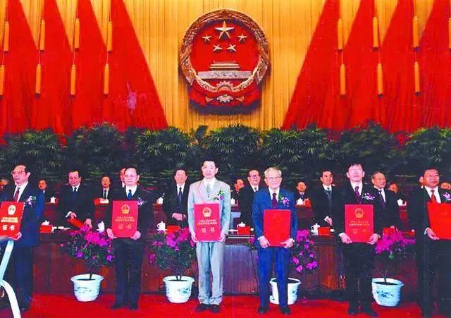 ②蒋锡夔(前排右三)在2002年度国家科技奖励大会上