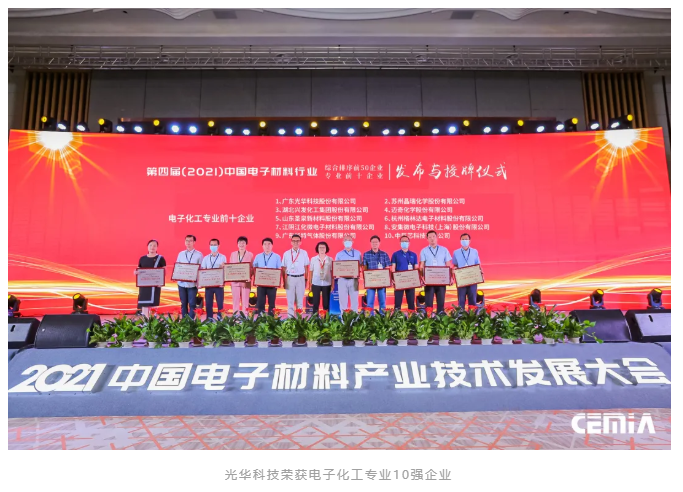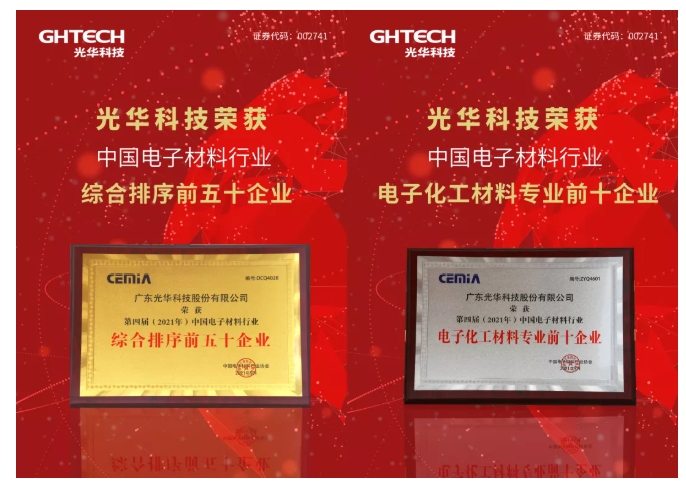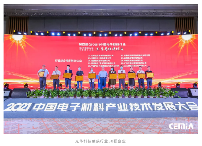 创新,是立足激烈国际竞争的利器。此次再次荣登“中国电子材料50强”和“电子化工材料专业10强”榜单,是对光华科技40余年创新发展的充分肯定与鞭策。光华科技作为定位高端的专用化学品技术服务提供商,在过去的40年深刻把握电子信息行业高速发展历史机遇,坚守匠心实业,立足自主创新,围绕高端电子化学品研制新材料和产业化方法、创新工艺技术,解决高端电子化学品在研发、生产与应用等系列国际难题,打破国外企业封锁与垄断,有力推动了电子化工材料行业的技术进步和产业升级。