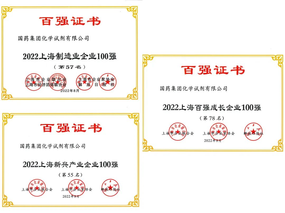 笃志前行,在接续奋斗实现高质量发展的进程中书写崭新篇章 2021年,国药试剂围绕产业链上下游协同发展、技术研发、数字赋能等方面工作,不断提升自身竞争力和综合实力。2021年,国药试剂经营效益再创新高,取得前所未有的新突破,主营业务收入增长31.78%,同时实现连续6年两位数以上的增长,为“十四五”开好局起好步贡献了积极力量。 入围三项“百强”名单,是对国药试剂近年来公司发展的多维度认可,更是对未来的鞭策和激励。作为国内化学试剂行业的领先者,公司秉承科技自立自强,深化供给侧结构性改革,突出国家重大战略任务需求导向,“揭榜挂帅”承接国家科技项目,打好关键核心技术攻坚战。 砥砺奋进,在红色基因的薪火相传中坚守“服务科技”的初心 国药试剂前身为1958年成立的经营化学试剂、玻璃仪器公司,作为新中国为了改善科学研究工作条件、满足科研工作需要的专业公司,经过60余年的不断发展,目前已经成为国内化学试剂行业的“国家队”、“主力军”。 尤其是“十三五”以来,公司积极落实“三新一高”要求,立足行业特色资源优势,心系“国之大者”,坚持“服务科技”的初心使命,加速改革与发展,打造创新驱动型卓越的中国化学试剂全产业链服务供应商。 从抗击疫情到疫苗生产,从航空航天到技术攻坚,从大国重器到人民健康,未来发展,国药试剂始终将国家的战略需要作为方向引领,砥砺奋进、勇毅前行,力争为化学试剂行业以及新兴产业发展不断增添活力,为提振上海经济作出更积极的努力,为国家实现科技自立自强贡献更多的智慧和力量!