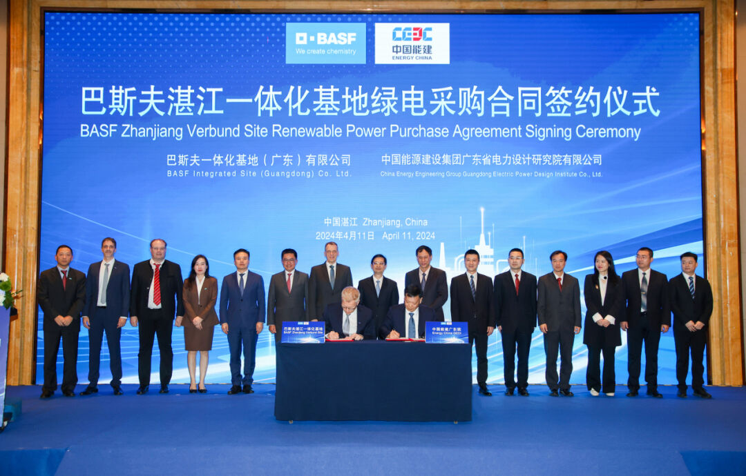 巴斯夫与中国能源建设集团广东省电力设计研究院有限公司(简称“中国能建广东院”)签署了一份为期25年的购电协议,为其位于广东省湛江市的新一体化基地采购可再生能源电力。