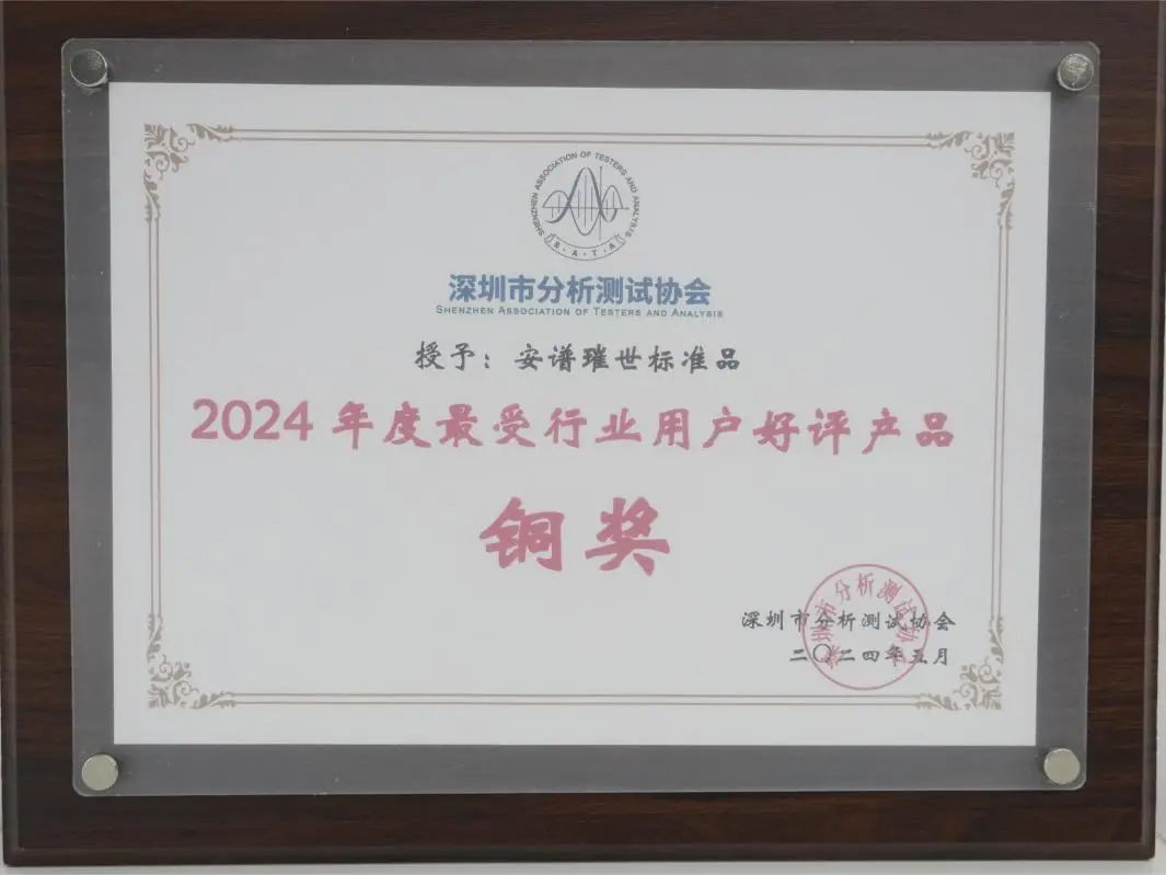 在这次行业盛会上,安谱实验荣获深圳市分析测试协会评选的四大奖项:2023年度优秀会员单位、2024年度最佳合作单位、2024年度最受行业用户关注企业银奖以及2024年度最受行业用户好评产品铜奖。这些奖项不仅是对安谱实验在分析测试领域专业实力的认可,更是我们广大行业客户对安谱实验产品质量和专业服务的肯定。