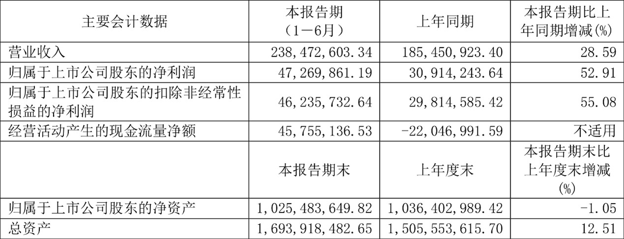 阿拉丁(688179)8月31日披露2024年半年度报告。2024年上半年,公司实现营业收入2.38亿元,同比增长28.59%;归母净利润4726.99万元,同比增长52.91%;扣非净利润4623.57万元,同比增长55.08%;经营活动产生的现金流量净额为4575.51万元,上年同期为-2204.7万元;报告期内,阿拉丁基本每股收益为0.17元,加权平均净资产收益率为4.50%。公告称,公司营业收入变化主要由于市场逐步回暖,公司持续推进研发创新、依靠产品品种丰富度的优势并结合销售端投入加大,进一步得到了市场认可。同时,报告期内将源叶生物纳入合并范围,促成销售收入增长。