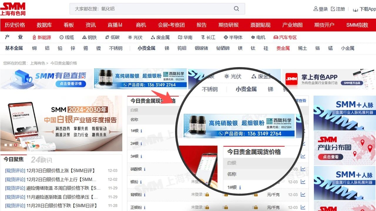 近日,西陇科学贵金属系列产品(硝酸银、银粉等),正式登陆SMM(上海有色网)。