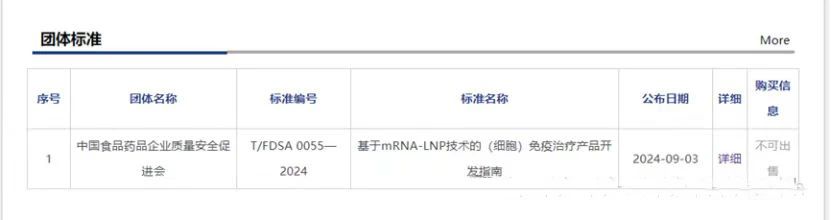 2024年9月3日,由国家药品监督管理局疫苗及生物制品质量监测与评价重点实验室主任陆家海教授、湖南远泰生物技术有限公司向双林博士联合主持,携手全国30多家企事业单位共同编制的《基于mRNA-LNP技术的(细胞)免疫治疗产品开发指南》(T/FDSA 0055—2024)团体标准正式发布,将于2024年10月3日起实施。