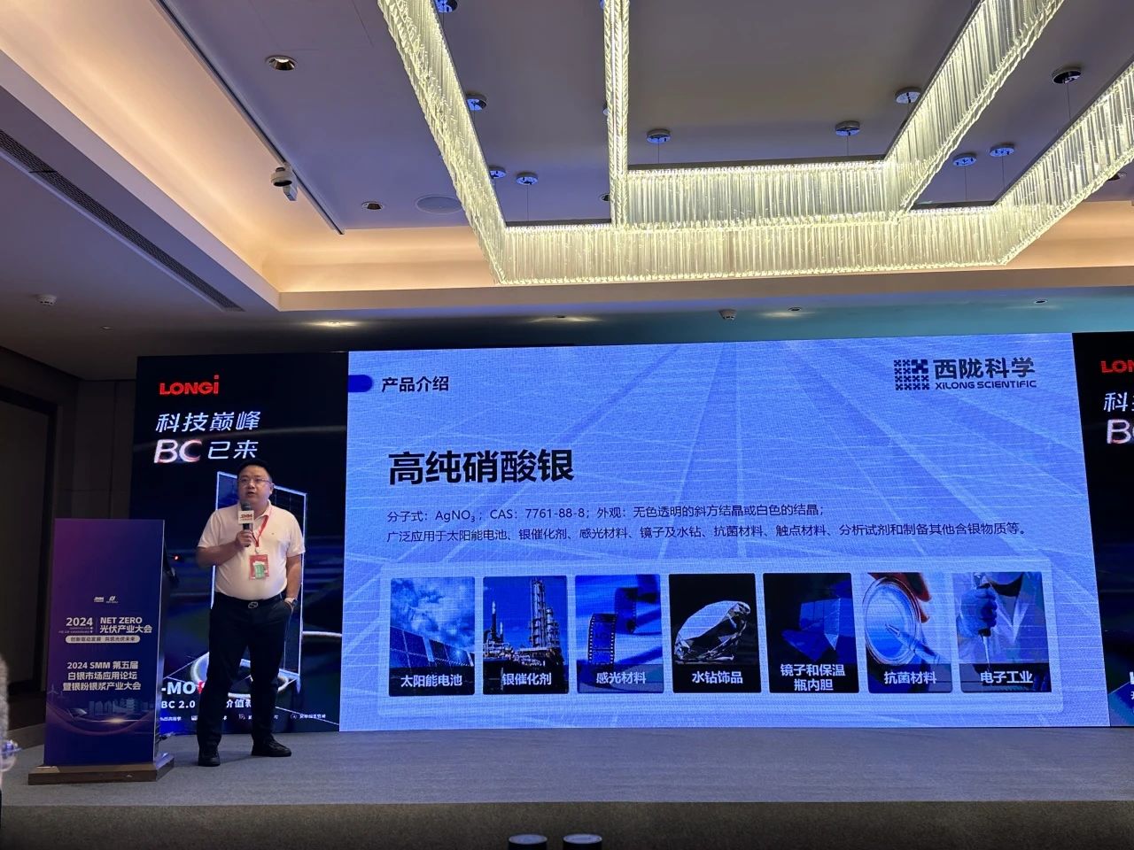 此次大会,西陇科学以硝酸银为例,在主题报告中提到了硝酸银的技术更新难点及市场供需平衡,展示西陇科学应用于光伏行业的产品解决方案、产业规模和产品系列化发展。在这个充满机遇与创新的时代,西陇科学将持续用专业的产品与服务,满足多样化的市场需求,助力全球能源转型和可持续发展,共同推动光伏产业的未来发展。