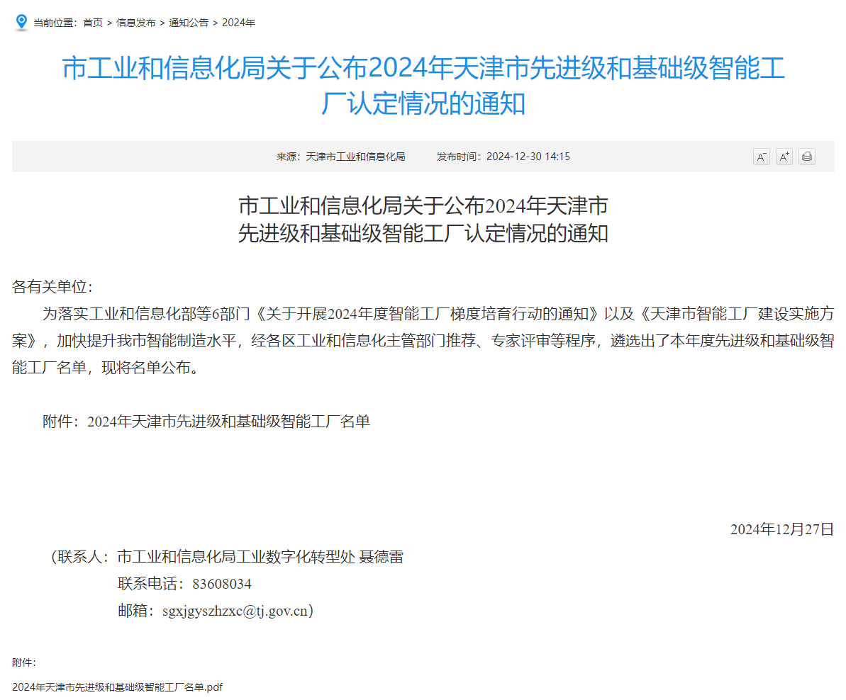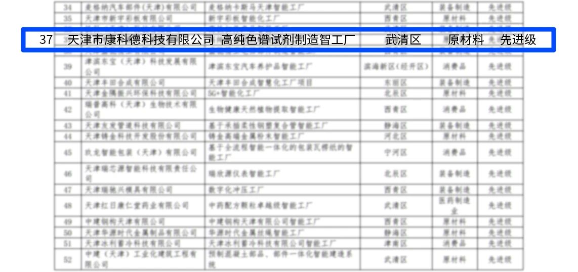 2024年12月30日,康科德公司凭借在智能生产领域的卓越表现,被天津市工信局评为先进级高纯色谱试剂制造智能工厂。此次天津市共评审出 51 家先进级和 25 家基础级智能工厂,康科德公司从中脱颖而出,彰显了在行业中的领军地位。