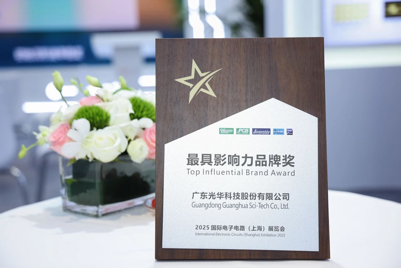 3月24至26日,2025国际电子电路(上海)展览会在上海圆满举办,展会以“创新驱动 智造无垠”为主题,推动行业创新及前沿技术,聚焦和展示电子制造领域的核心科技。GHTECH光华科技与成员企业东硕科技以“技术引领·实现高端电子电路化学品国产替代”为主题参展带来了PCB、IC载板、先进封装整体产品解决方案。展会期间还有精彩的技术演讲,凭借在电子化学品领域的技术突破与市场贡献,光华科技斩获“最具影响力品牌奖”、“2024年度优秀论文奖”重要奖项。