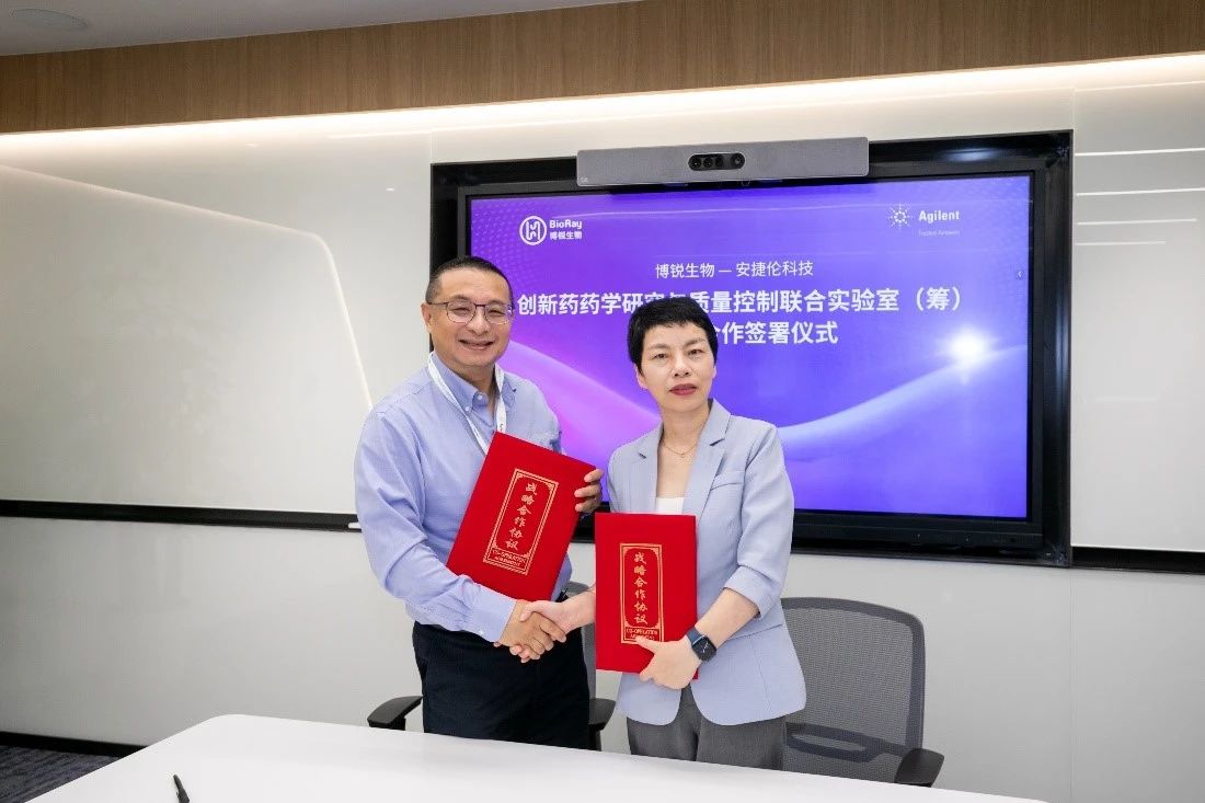 2025年8月15日,上海——近日,安捷伦科技公司与浙江博锐生物制药有限公司(下称“博锐生物”)签署了战略合作协议,双方将合作筹建“创新药药学研究和质量控制联合实验室”。安捷伦副总裁兼大中华区总经理杨挺,博锐生物CEO王海彬博士分别率领双方高层出席了签约仪式。