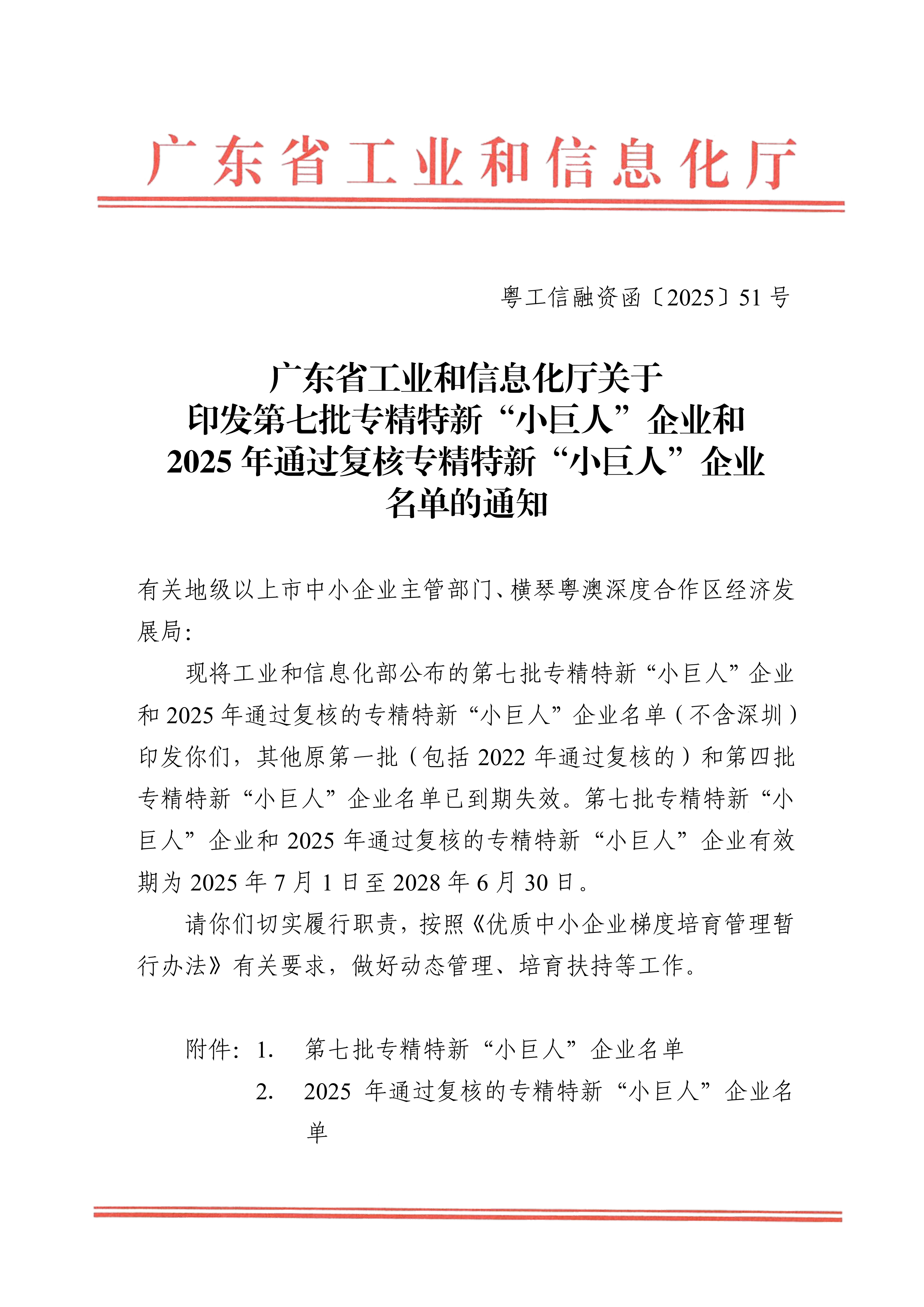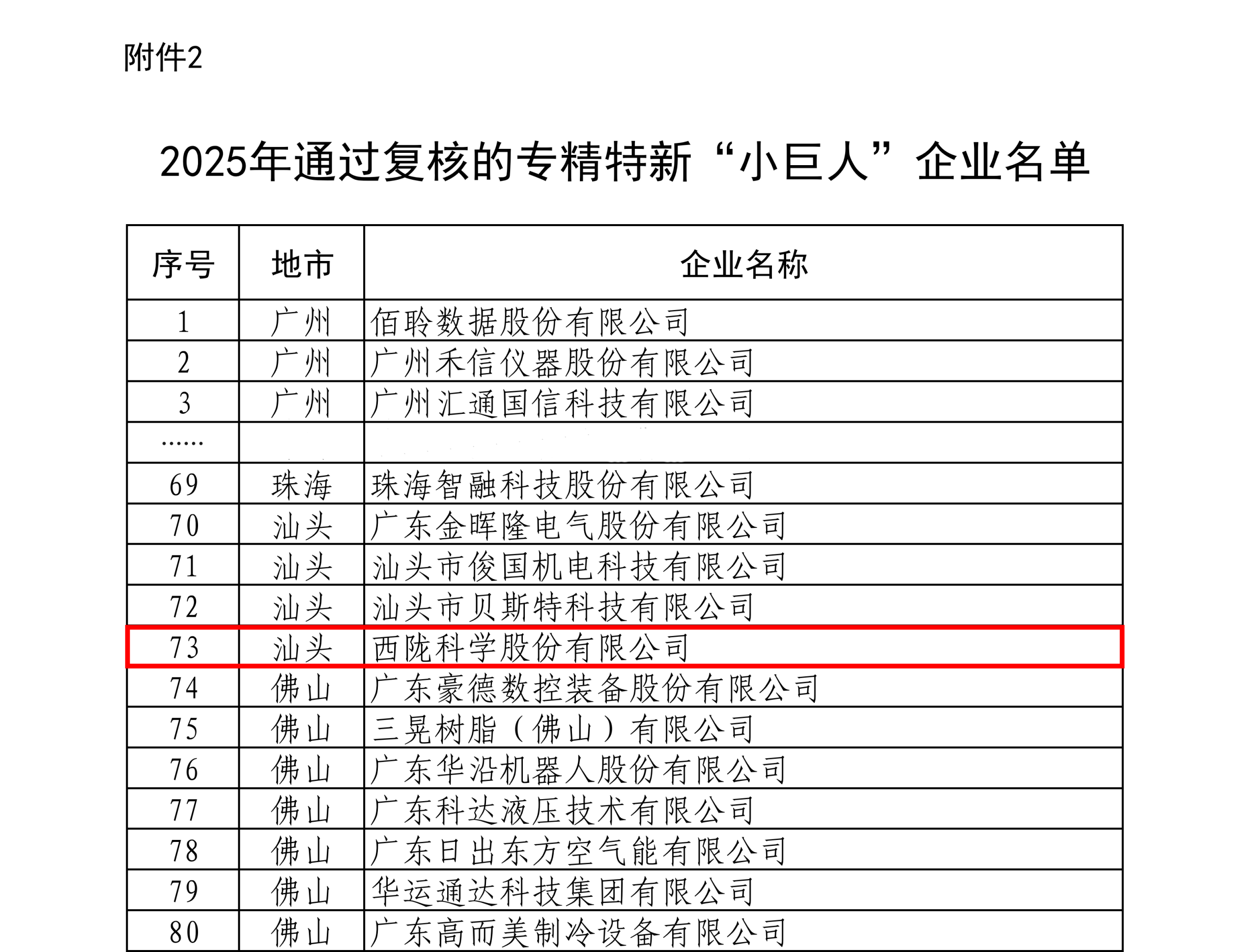 日前,广东省工业和信息化厅发布2025年通过复核的专精特新“小巨人”企业名单,西陇科学榜上有名,成功通过复核!