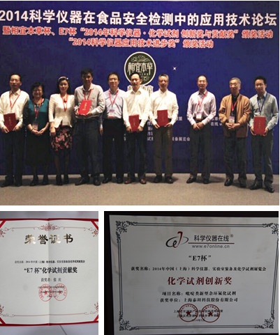 5月23日,为促进我国科学仪器技术的发展实现我国科学仪器的自主创新,上海科学仪器产业技术创新联盟、上海科学仪器自主研制协作服务联盟特同期设立“2014科学仪器创新奖、科学仪器贡献奖和新人奖”,以表彰在科学仪器自主创新方面做出突出贡献的单位和个人。经过各位专家认真公平公正的评审,泰坦科技在单位和个人方面各荣获一个奖项:企业研制的“吡啶类新型杂环氟化试剂”获得“化学试剂创新奖”,企业总裁张庆获得“化学试剂贡献奖”。