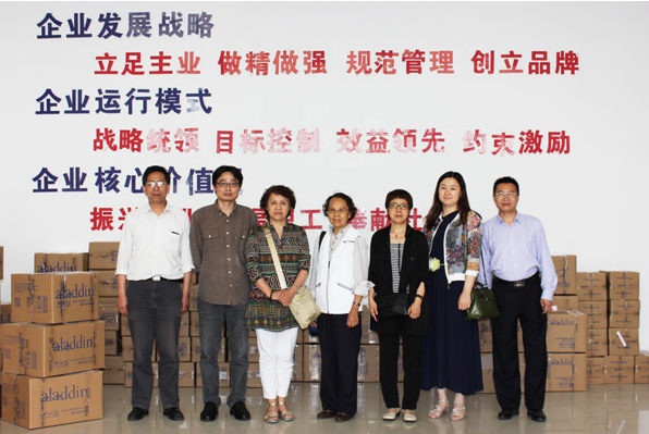 2015年6月9日下午,全国化学试剂信息站、《化学试剂》杂志专家一行来到阿拉丁奉贤工厂实地调研考察。工厂领导、研发中心负责人表示热烈地欢迎并且热情接待,技术研发中心负责人凌青博士向专家一行做了专题汇报,同时还就试剂行业发展方面的热点问题交换了意见,做了亲切交流。随后,专家一行参观了公司技术研发中心、质量检测中心、成品仓库等部门。参观成品库时,专家们饶有兴趣的扫描了产品包装二维码。阿拉丁的技术成果、科研实力给专家一行留下深刻印象。专家一行对阿拉丁无水级试剂的成功研制给予高度评价。调研考察后,工厂领导、研发中心负责人与专家一行进行了合影。
