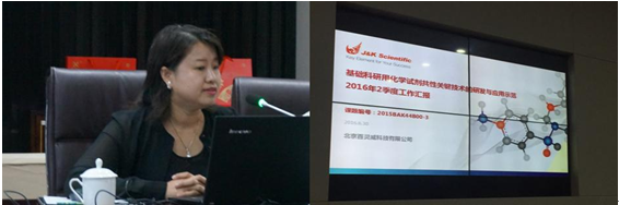 北京百灵威科技有限公司刘辉作工作汇报。报告了项目整体进度,开展了合成工艺、无水无氧分装包装工艺等技术的研究情况。格氏试剂合成工艺技术完成64个品种,申请1项发明专利。离子对试剂的合成工艺技术完成14个品种,无水无氧分装包装工艺技术完成12个品种,荧光素类试剂的合成工艺技术完成40个品种。分析了课题遇到的问题,提出了改进措施。