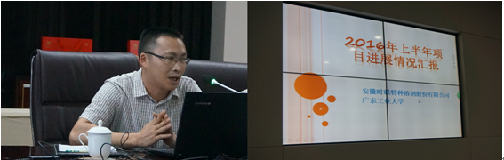安徽时联/广州工业大学谭伟作工作汇报。报告了已完成萃取精馏技术小试工艺、反应精馏技术小试工艺的研究,应用在甲醇、乙腈、异丙醇、丙酮等产品中。微粒控制技术正在开展中。