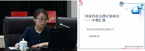 南京化学试剂股份有限公司李清洁作工作汇报。报告了项目累计完成产品数22个,新编企业标准27个,一项实用新型专利(已授权),申请一项发明专利,论文撰写中。重点介绍了高压重结晶技术和升华提纯技术的研究。