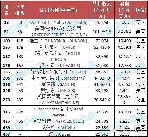 2016《财富》世界500强:医药领域