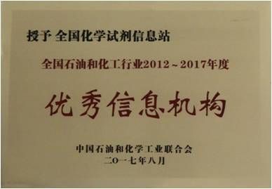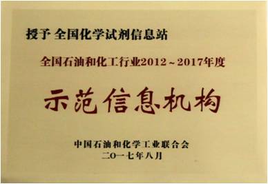 同时在2017年第四届石油和化工行业信息机构考评总结大会上,全国化学试剂信息总站获得“全国石油和化工行业示范信息机构”、“全国石油和化工行业优秀信息机构”等多项荣誉称号,并获准升级为“全国化学试剂信息总站”。