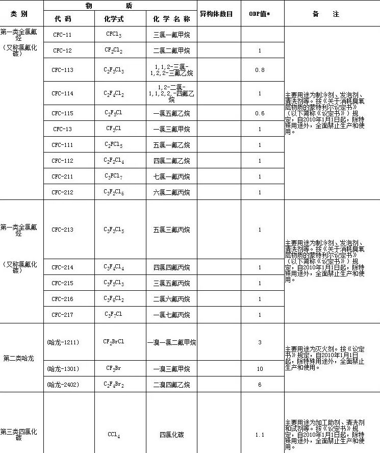 五、本通知所指消耗臭氧层物质具体见《中国受控消耗臭氧层物质清单》(环境保护部、发展改革委、工业和信息化部公告 2010年第72号)。