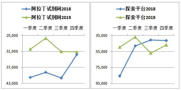 西陇科学官网2019年排名异常,仅第二季度有数据,且比2018年相差悬殊。可能其客户更关注其电商网站“找试剂”。