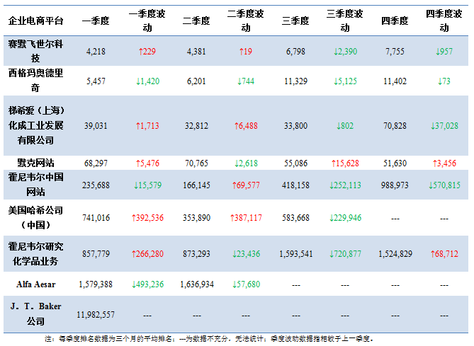 全国化学试剂信息总站连续多年跟踪统计国内外试剂行业部分相关企业网站和电商平台的排名情况,并且进行全面数据对比,重点分析试剂行业企业官网和电商平台的变化,供广大读者参考。