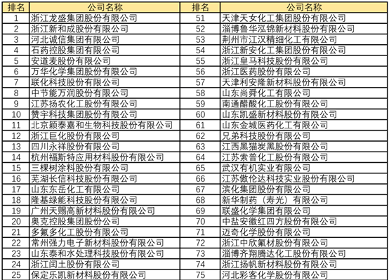 2020年11月25日,“第二十届国际精细化工原料及中间体峰会暨2020中国精细化工百强发布会”在山东寿光召开,发布了“2020中国精细化工百强”榜单。