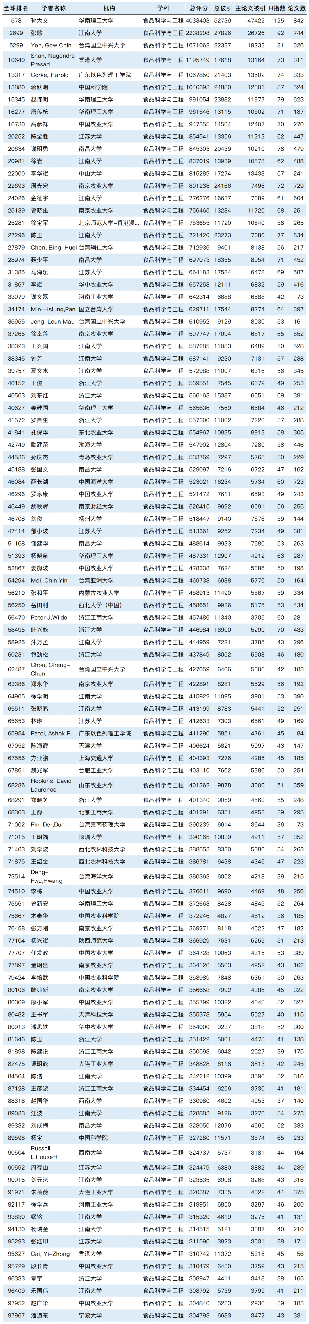 该名单中国内共有8029人入围,材料科学与工程(共1793人,列出前200名),化学(共1985人,列出前200名),食品科学与工程(共104人)。