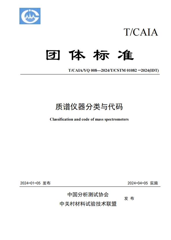 由中国分析测试协会和中关村材料试验技术联盟发布的团体标准《质谱仪器分类与代码》于于2024年1月5日发布,标准将于4月5日开始实施。