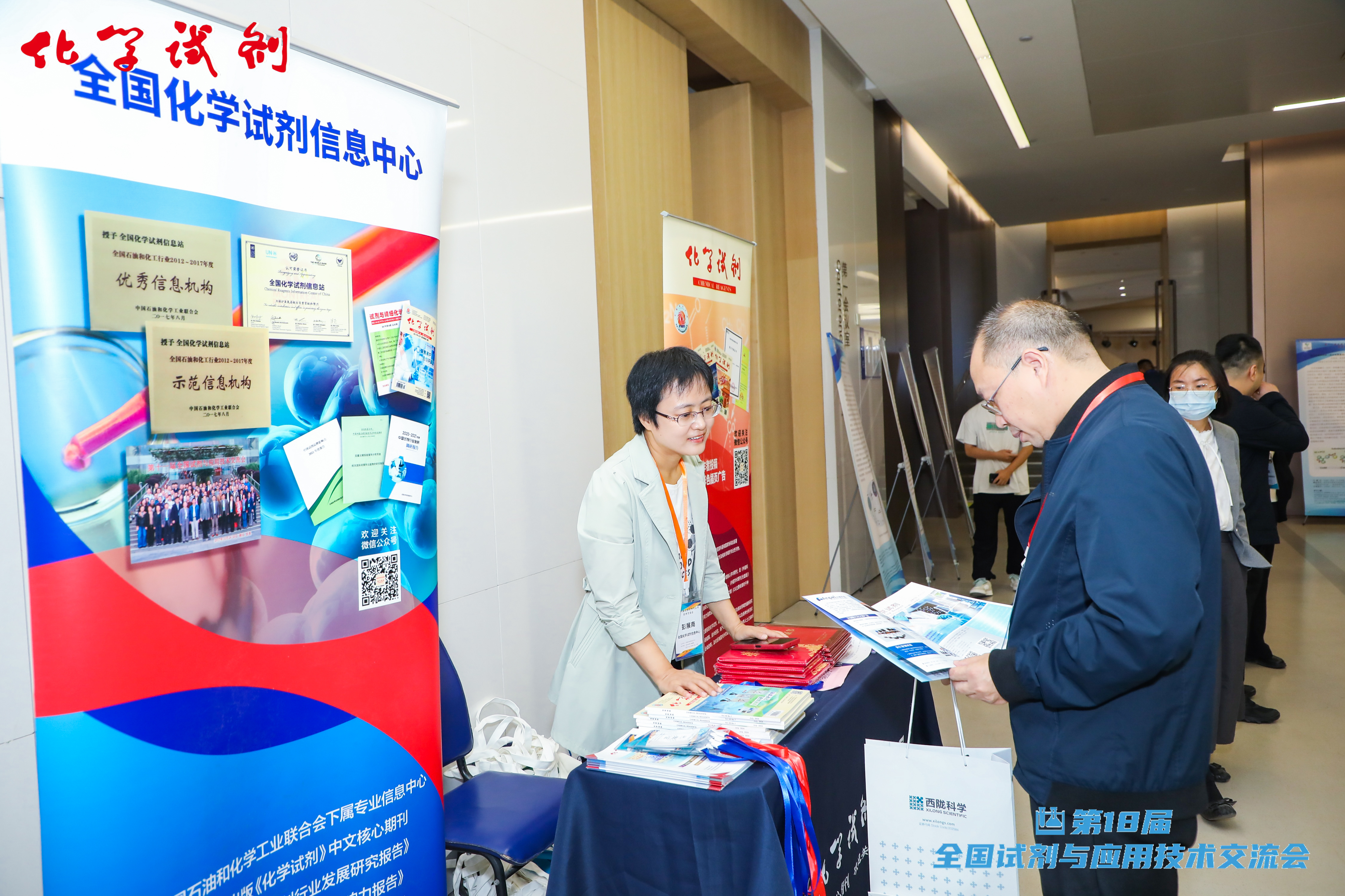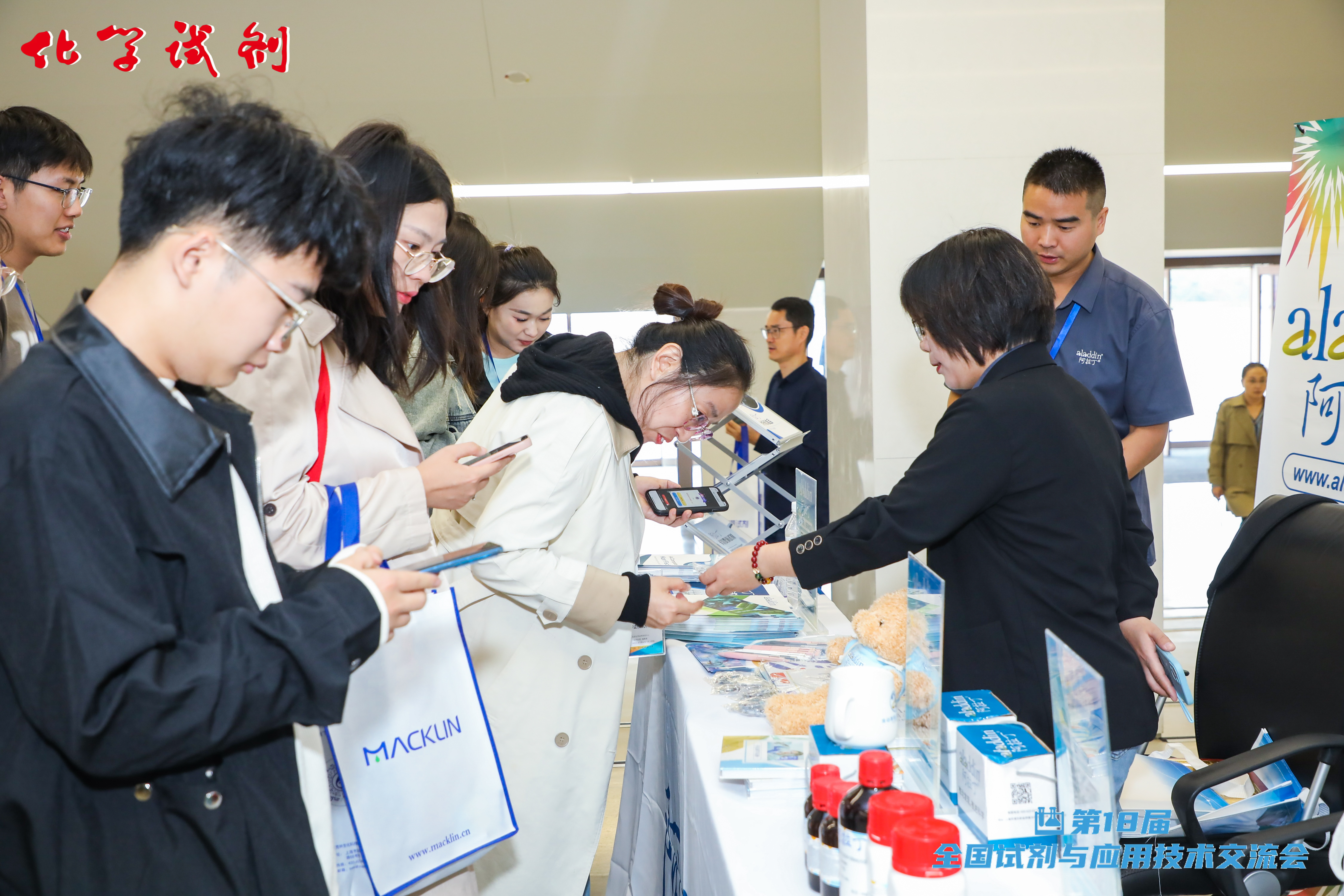 试剂企业展区位于报告厅一层,旨在为试剂同仁和学者搭建一个学习、沟通和信息共享的平台。国药集团化学试剂有限公司、西陇科学股份有限公司、广东光华科技股份有限公司、上海阿拉丁生化科技股份有限公司、上海麦克林生化科技股份有限公司、上海馨晟试化工科技有限公司、国合通用评价认证股份有限公司、上海化工研究院有限公司作为本次会议的支持企业设立了展台,吸引了众多参会人员和在校学生驻足交流。