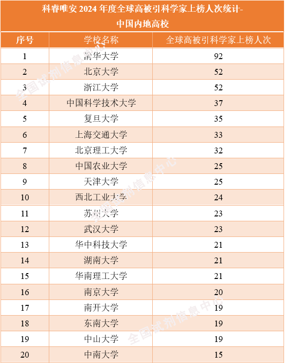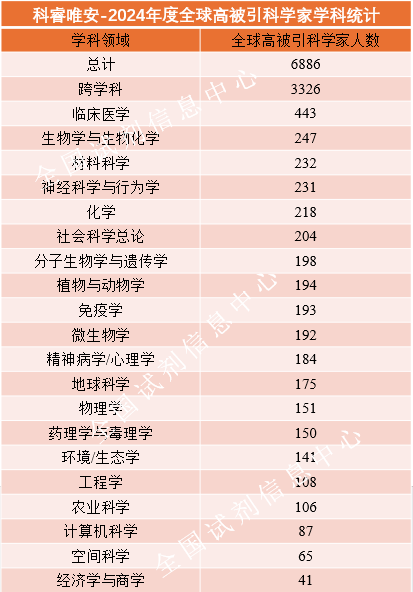 获取2024年度全球高被引科学家详细数据,请关注【化学试剂期刊】微信公众号,回复【2024高被引】获取。