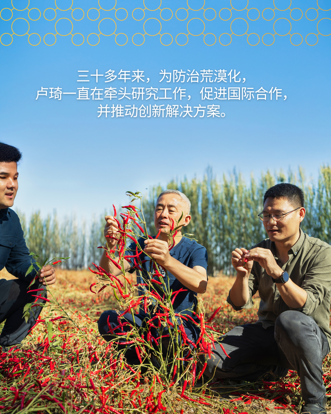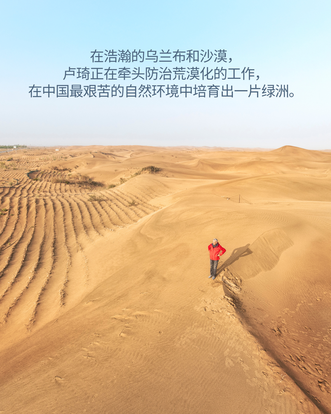 在应对这一系列挑战方面,卢琦都具备专业知识。他在长达30余年的职业生涯中牵头了50多个科研项目,发表了180多篇经过同行评审的论文,撰写了20本专著,并协助中国落实《联合国防治荒漠化公约》。这位61岁的老人正在利用这些经验,让沙漠重焕生机。