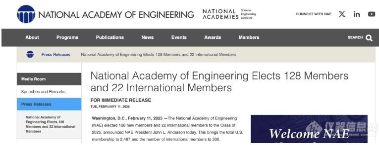 美国华盛顿特区当地时间2025年2月11日,美国工程院(National Academy of Engineering, NAE)正式公布2025年新增院士名单,包括128名院士和22名外籍院士。