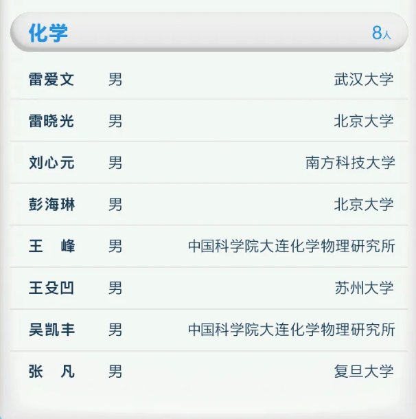 2025年11月24日,新基石科学基金会正式揭晓第三期“新基石研究员”获资助名单,35位科学家上榜。本期名单呈现年轻、均衡、多元等特征:更年轻: 获资助人平均年龄45岁,为三期以来最低。其中青年科学家9位(男性未满40周岁;女性未满43周岁),占比超1/4创下新纪录;最年轻的获资助人仅35岁。更均衡: 获资助人来自11个城市的22家机构。南开大学、首都医科大学附属北京天坛医院、中国科学院古脊椎动物与古人类研究所等8家机构首次上榜。更多元: 首都医学科学创新中心的Yuval Rinkevich,成为首位入选的外籍非华裔科学家;王伊龙、郁金泰两位医师科学家入选,将在神经系统治疗领域寻求突破。化学领域,雷爱文、雷晓光、刘心元、彭海琳、王峰、王殳凹、吴凯丰、张凡8人入选资助名单。