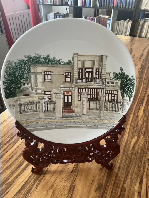 宋金链:其实市委会现在搬到了团结大厦,我觉得一些新会员们看着这些盘子,讲起我们民建历史,就很有传承。像这样的作品我们有一共10幅。一共创作了10幅作品,回头我们在会员之家中展示出来,讲好民建故事,传承好民建文化。