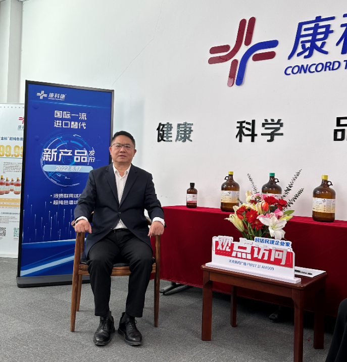 主持人:大家可能也注意到了,在我们访谈区的后边,摆了一排瓶瓶罐罐,这些瓶瓶罐罐其实就是我们生产的高纯化学试剂的容器。您给我们介绍一下,在我们同行业内当中,咱们康科德现在是处在一个什么样的水平上?