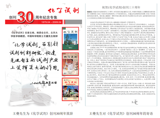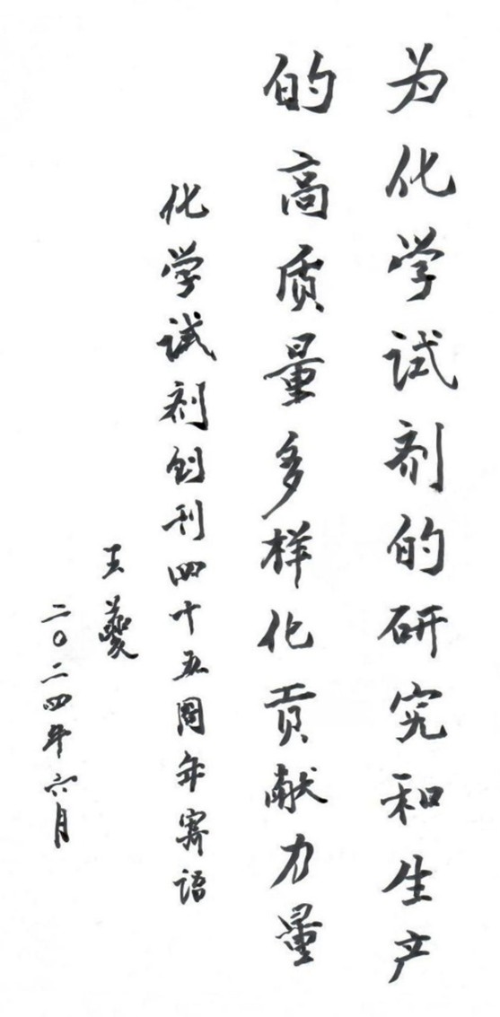 王夔先生为《化学试剂》创刊45周年题词寄语