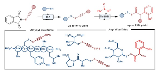 6.Construction of alkynyl and acyl disulfides directly through thiol-modification with N-alkynylthio phthalimides under acid catalysis.Org. Chem. Front. 2023, 10 , 2070-2074.