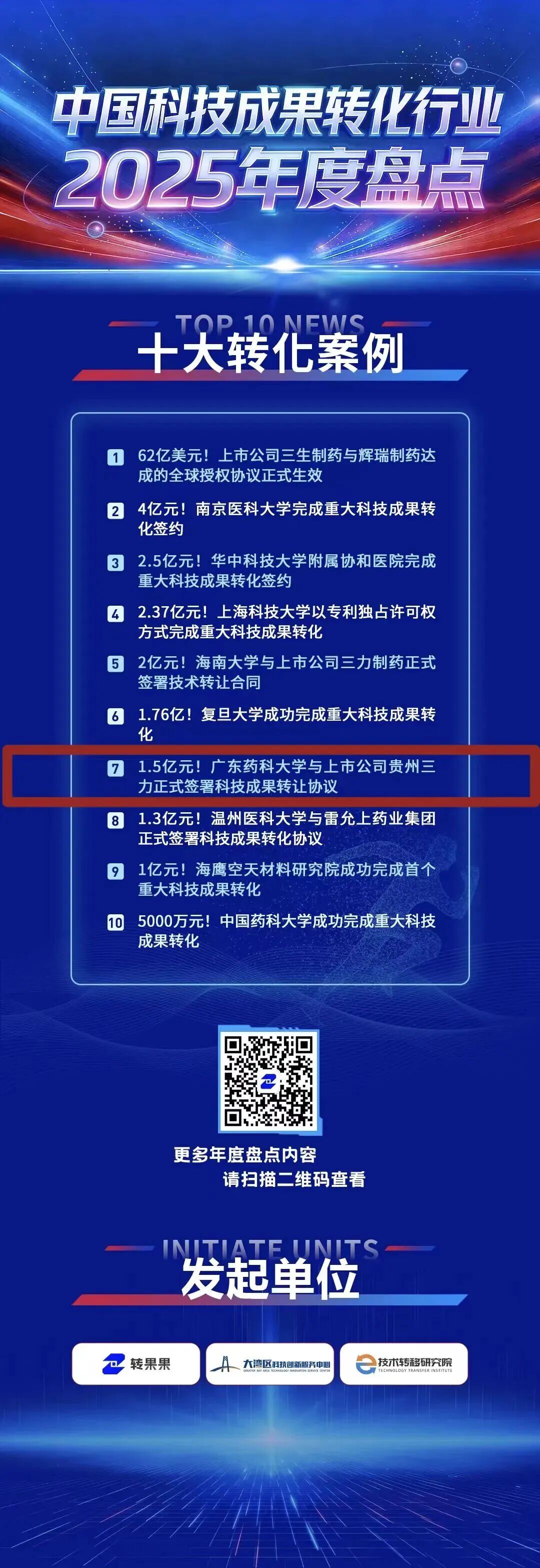 在刚刚揭晓的“中国科技成果转化行业2025年度十大转化案例”评选中,我刊编委、广东药科大学肖雪博士团队主导的中医药成果转化项目,凭借1.5亿元的合作金额与创新的转化模式,成功入选年度十大案例!
