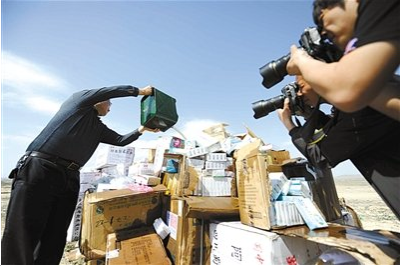 乌鲁木齐工作人员准备销毁铬超标药用胶囊和胶囊剂药品
