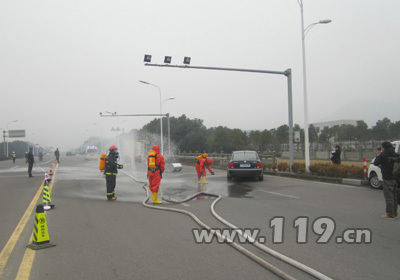 为准确了解社会单位的应急反应能力,提高社会单位自防自救能力和多部门协同作战能力,宁波奉化立足“12.25”甬台温高速槽罐车泄漏事故战斗实例,于1月9日下午,由奉化市人民政府牵头,在奉化市西河路近三高连接线处开展了“2013年危险化学品泄漏事故应急联动救援演练”活动。奉化市公安局、萧王庙派出所、交警大队、消防大队、120救护中心、安监局、环保局、新闻媒体、萧王庙街道等部门单位参与。