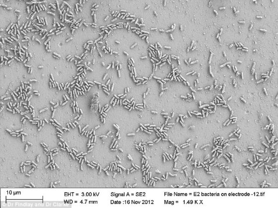 英国东安格利亚大学的生物学家汤姆-克拉克博士说:“我们知道细菌能转移金属和矿物质里的电子,这种互动主要取决于细菌体表的特殊蛋白。但是目前我们还不清楚,这些蛋白是直接还是间接通过环境中一种我们不知道的介质做到这些的。我们的研究显示,这些蛋白质能够直接‘接触’矿物质表面,并产生电流,这表明细菌可能是依附在金属或者矿物质表面,通过它们的细胞膜传导电流的。事实上这是我们第一次观测到细菌细胞膜的组成成分是如何与不同物质发生互动的,并首次了解了金属和矿物质在细胞表面发生的互动存在多大差异。这些细菌展现出作为微生物燃料电池的巨大潜能,它们可以通过分解家庭或者农业废料产生电流。”