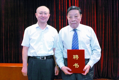 8月8日,首届中国质量奖评选委员会在京举行成立大会。国家质检总局局长、中国质量奖评审表彰委员会主任委员支树平出席大会。支树平会见到会的委员,并向两院院士、原北京理工大学校长、中国质量评选委员会主任委员王越(右)颁发聘书。