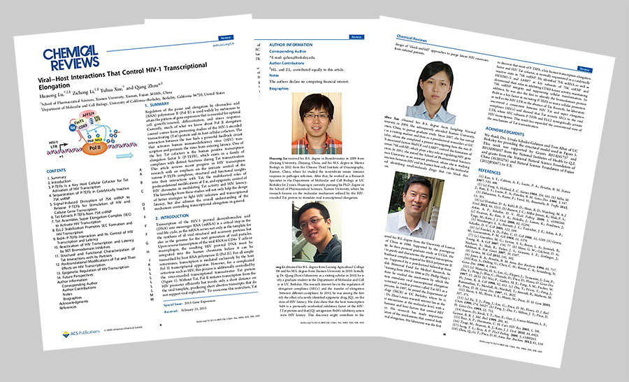 近日,厦门大学药学院专家周强教授课题组应邀在国际顶级权威刊物《化学评论》(Chemical Reviews)上发表了题为“Viral-Host Interactions That Control HIV-1 Transcriptional Elongation”的综述性文章。
