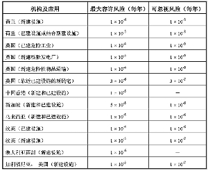 表1.不同国家(地区)所制定的个人可接受风险基准