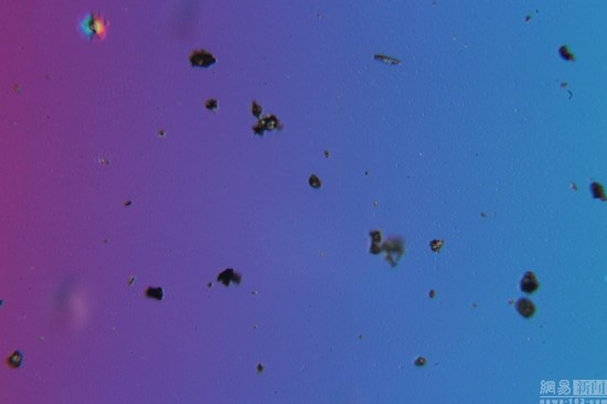 3月23-27日,北京连续雾霾,污染不断加重,在27日,AQI指数长时间维持在400上下。空气中细小的霾颗粒到底是什么样子呢?网友@张超_摇光通过显微镜将霾颗粒放大1000倍后,发现他们形状各异,有复合体,有生物颗粒,有矿物质的,看上去触目惊心。