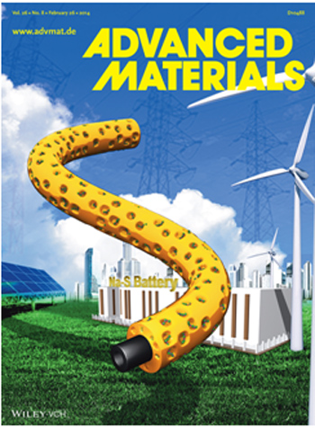 最近,在国家自然科学基金委、科技部和中国科学院的支持下,化学所分子纳米结构与纳米技术院重点实验室的研究人员,在新型高比能室温钠-硫电池研究方面又取得新进展。研究结果发表在近期出版的Adv. Mater. (2014, 26, 12611265)上,并被选为当期背封面(Back Cover)论文(图1)。