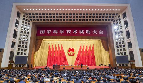 1月9日,国家科学技术奖励大会在北京人民大会堂举行。2014年度国家科学技术奖励共授奖318项成果、8位科技专家和1个外国组织。新华社记者王晔摄