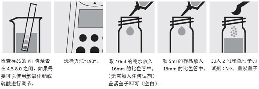 8月12日,天津滨海新区危险化学品仓库发生的爆炸震惊全国,牵动了全国人民的关切之心。此次爆炸事故发生突然,危险品类型复杂,应急处置难度大,后果极其严重。事故发生后,爆炸中心区、爆炸区居民楼周边以及海河等处都受到了严重的氰化物污染,特别是对当地的水体造成了严重的污染。含氰化物的废水可通过呼吸道、食道及皮肤浸入而引起中毒。轻者有粘膜刺激症状,唇舌麻木、气喘、恶心、呕吐、心悸。重者,呼吸不规则,意识逐渐昏迷、大小便失禁、可迅速发生呼吸障碍而死亡。氰化物中毒治愈后还可能发生神经系统后遗症,水的氰化物浓度超过0.03mg/l时,鱼类中毒。因此、如何简单、快速的了解当前水体中氰化物的污染状况尤为重要。