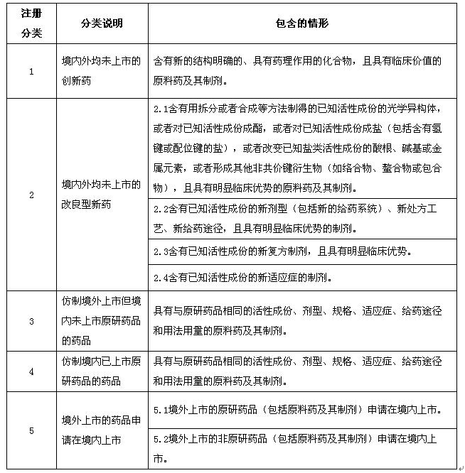 对化学药品注册分类类别进行调整,化学药品新注册分类共分为5个类别,具体如下: