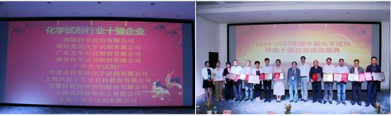 国药集团化学试剂有限公司、上海阿拉丁生化科技股份有限公司同时还获得2014-2015年度中国化学试剂优秀品牌奖。化学试剂行业由于其产品和用户的特殊性,品牌成为市场占有率和企业长远发展的具体体现。