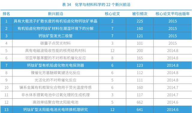 2.2 重点新兴前沿——钙钛矿相 关 6个研究前沿综合分析