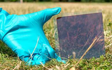 钙钛矿型材料相关 6 个研究前沿包括 1 个热点前沿和 5 个新兴前沿。钙钛矿型太阳能电池是第三代太阳能电池中最热门的研究方向,短短几年时间就超过了非晶硅、染料敏化、有机太阳能电池等新一代薄膜电池历经十多年研究的成果,被 Science 评为 2013 年度十大科学突破之一。钙钛矿型太阳能电池的核心是具有钙钛矿ABX 3 晶型的有机金属卤化物吸光材料,其中 A 为甲胺基(CH 3NH3 ),B 为金属铅原子,X 为氯、溴、碘等卤素原子,最常见的是碘化铅甲胺(CH 3 NH 3 PbI 3 )。2009 年,日本桐荫横滨大学 Tsutomu Miyasaka 课题组率先以钙钛矿型材料作吸光层,在染料敏化太阳能电池基础上制造出钙钛矿型太阳能电池,但光电转换效率仅为 3.8%。